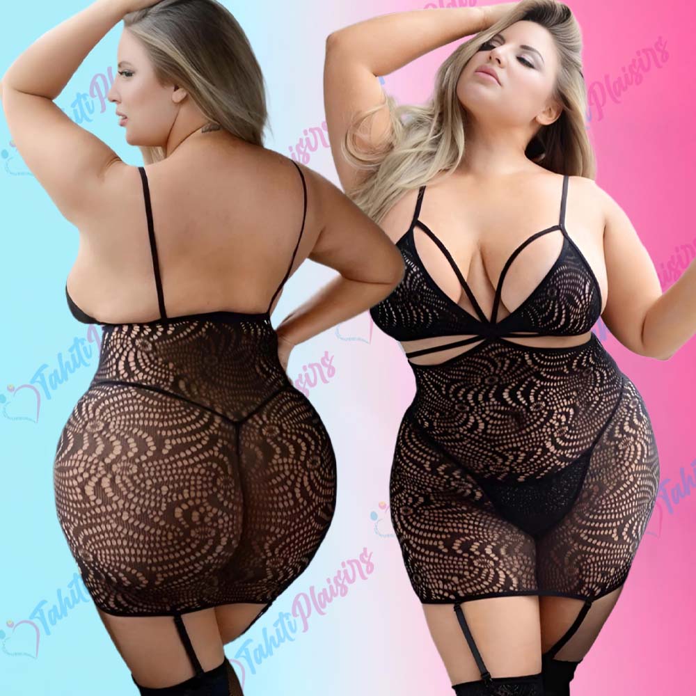 Robe en dentelle noire transparente fabriqué dans un tissu doux, extensible et confortable.